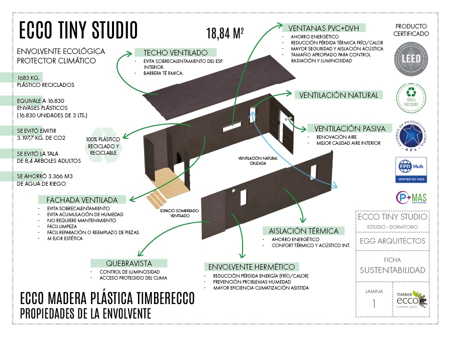 Timberecco fue parte del desarrollo del Módulo Multipropósito Net Zero, uno de los proyectos emblemáticos de Construye Zero, aportando sus revestimientos de madera plástica reciclada como una solución constructiva alineada con criterios de eficiencia, durabilidad y sostenibilidad.